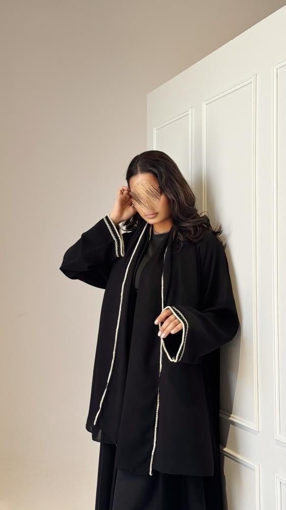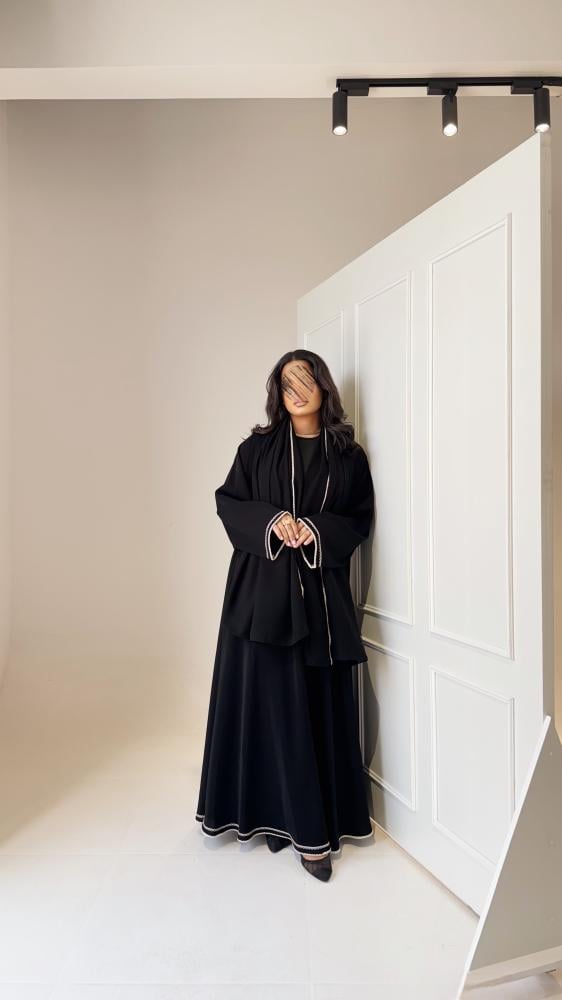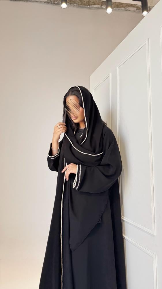 عبايه سودا فخمه بتطريز سنارة أنيق وتصميم دبل كلوش تمنحك فخامة ناعمة وتفاصيل تعكس ذوقك الراقي في كل مناسبة.